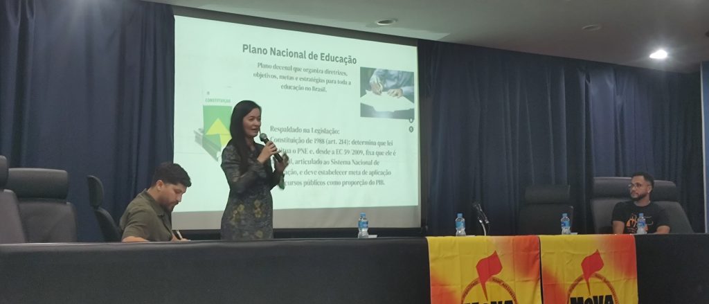 A professora Luciana também enfatizou que essa realidade coloca em evidência o desafio de planejar a educação para os próximos dez anos à luz da atualização do Plano Nacional de Educação (PNE 2024-2034), que traz metas específicas para a expansão e qualificação da educação superior, como a democratização do acesso e a garantia da permanência estudantil. E que, entretanto, para que tais metas possam ser cumpridas, especialmente aquelas que exigem políticas de apoio social, de inclusão e de valorização da qualidade do ensino público e gratuito, será imprescindível assegurar recursos adequados. Tal necessidade, segundo a professora, entra em tensão com o Arcabouço Fiscal, que impõe limites severos ao crescimento das despesas públicas, evidenciando a contradição entre os objetivos de universalização e qualidade do PNE e a política de austeridade fiscal atualmente em vigor.